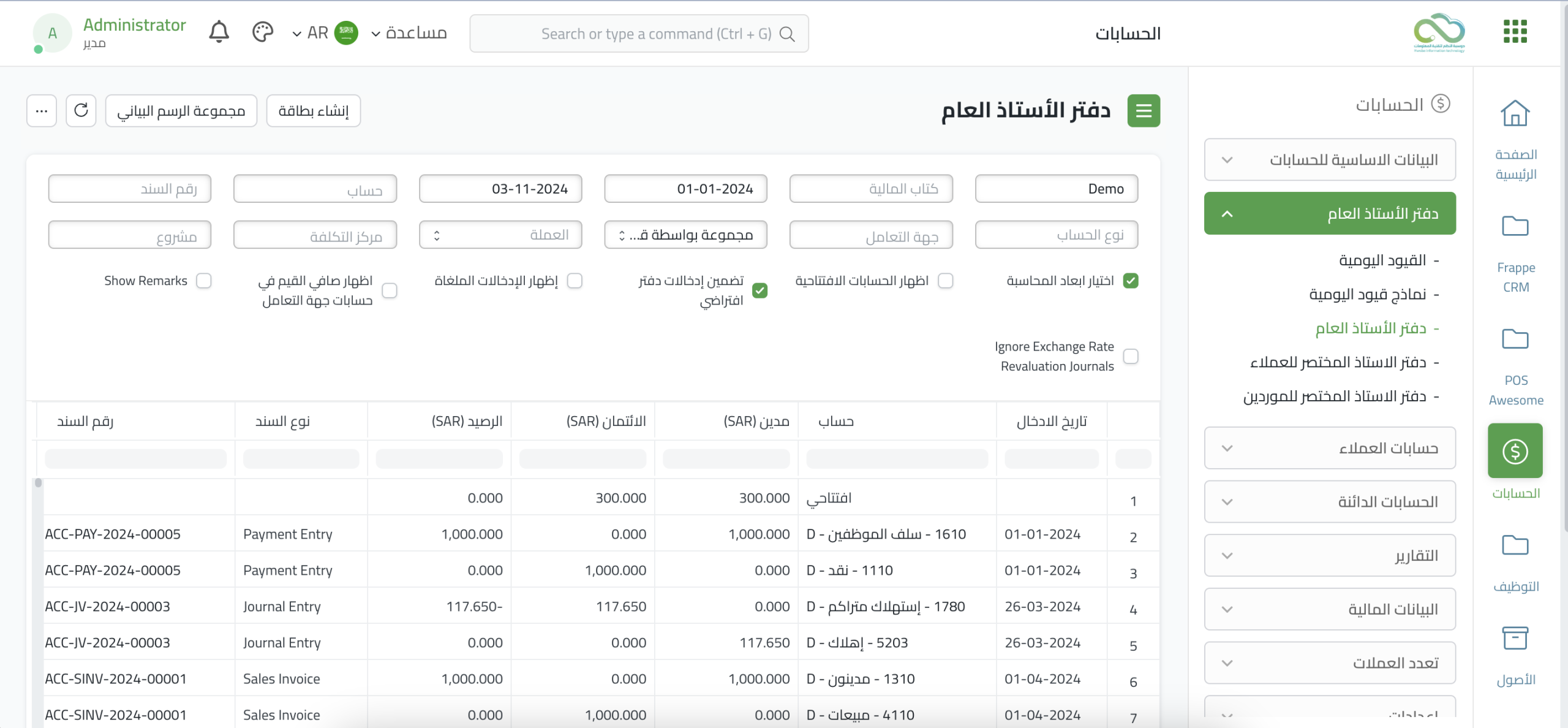 يتكامل النظام مع جميع وحدات الأعمال الأخرى، مما يوفر رؤية شاملة للأداء المالي للمؤسسة في الوقت الفعلي. يدعم النظام الفوترة الإلكترونية المتوافقة مع ZATCA، ويوفر تقارير مالية دقيقة تساعد في اتخاذ القرارات الاستراتيجية.