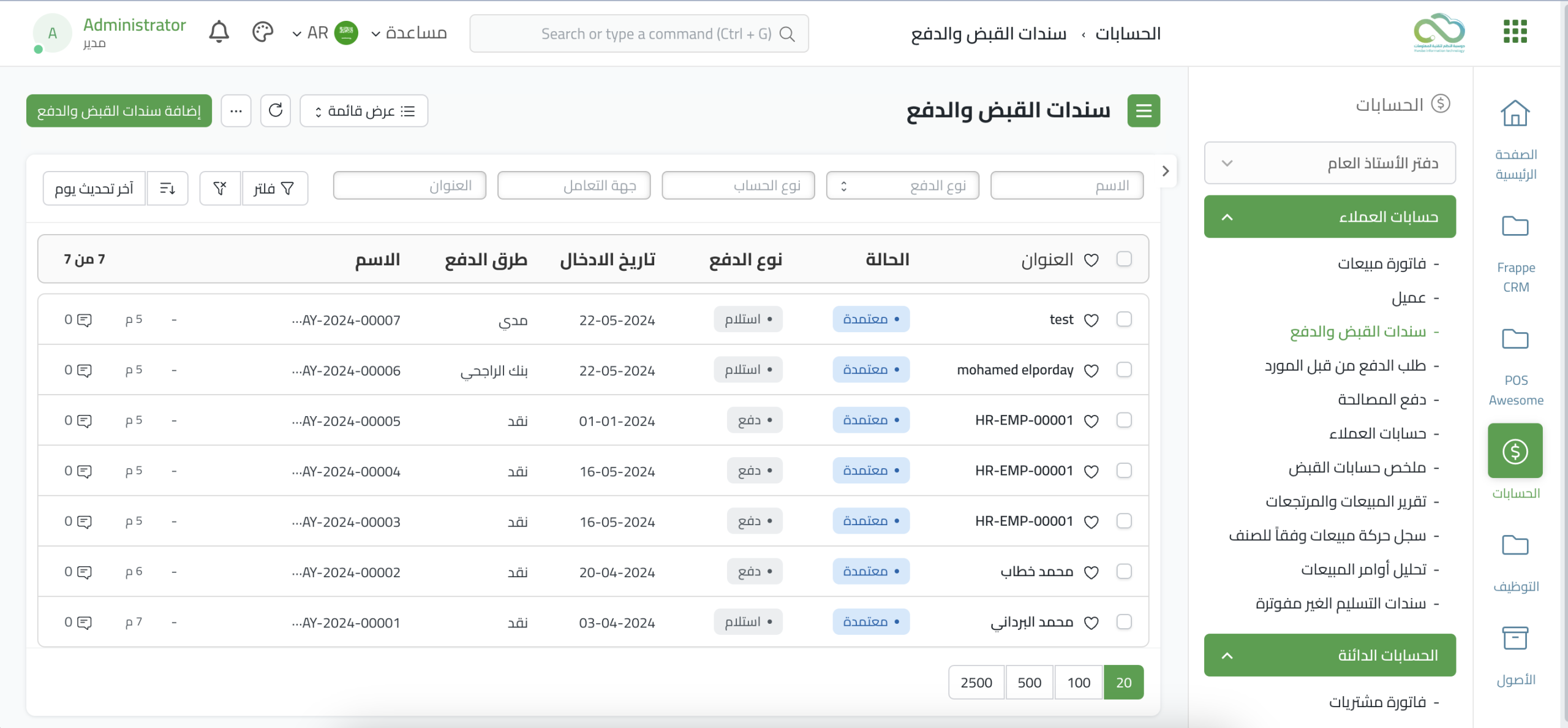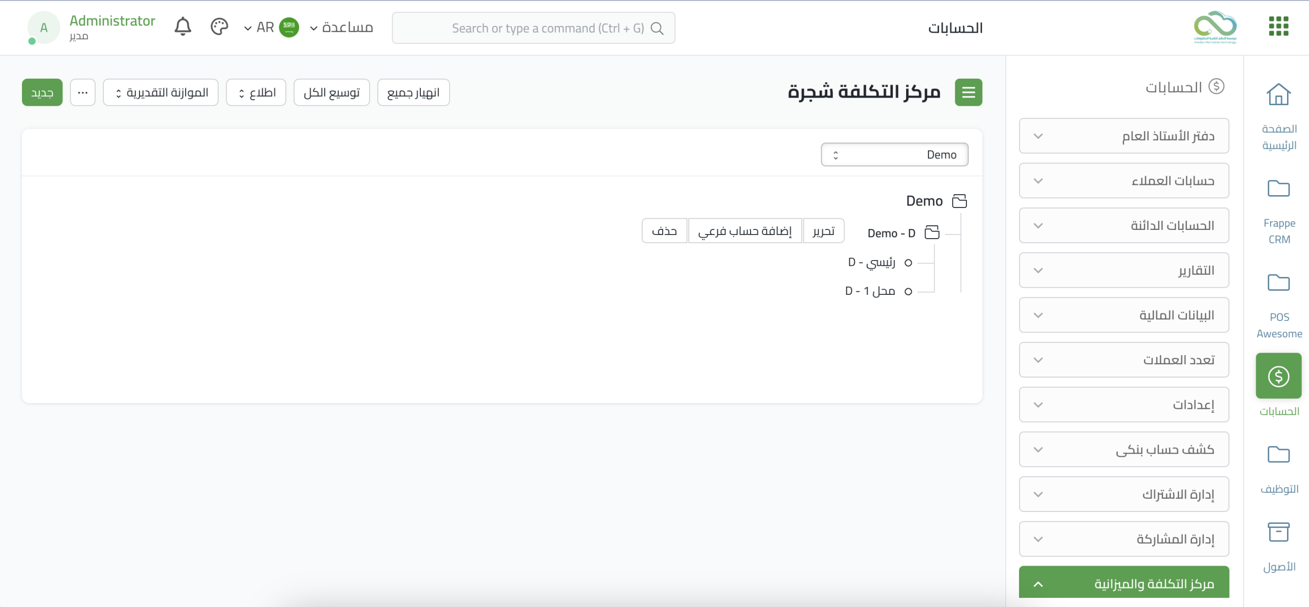 تكامل كامل مع أنظمة المؤسسة الأخرى مثل المبيعات والمشتريات والمخازن والموارد البشرية